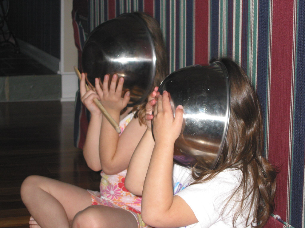 The dynamic duo amazingly disappear when hiding behind stainless steel bowls!